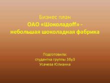 Бизнес план ОАО Шоколадоff небольшая шоколадная фабрика Подготовила