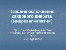 Поздние осложнения сахарного диабета микроангиопатии Доцент кафедры факультетской