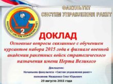 ДОКЛАД Основные вопросы связанные с обучением курсантов набора