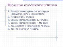 Парадигма классической генетики 1 Взгляды ученых древности на