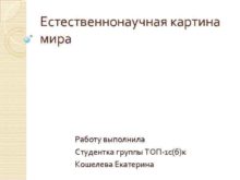 Естественнонаучная картина мира Работу выполнила Студентка группы ТОП