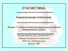 СТАТИСТИКА Аналитическая статистика Лекция 1 Теоретические распределения в