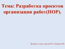 Тема Разработка проектов организации работ ПОР Выполнил студент группы
