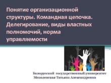 Понятие организационной структуры Командная цепочка Делегирование виды властных