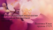 Информационные технологии управления бюджетной системой Пелевин Илья группа