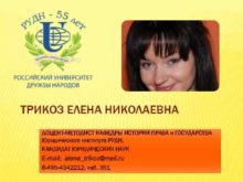ТРИКОЗ ЕЛЕНА НИКОЛАЕВНА ДОЦЕНТ-МЕТОДИСТ КАФЕДРЫ ИСТОРИИ ПРАВА и