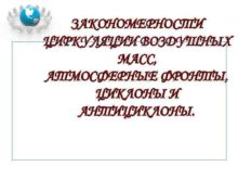 ЗАКОНОМЕРНОСТИ ЦИРКУЛЯЦИИ ВОЗДУШНЫХ МАСС АТМОСФЕРНЫЕ ФРОНТЫ ЦИКЛОНЫ И