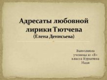 Адресаты любовной лирики Тютчева Елена Денисьева Выполняла ученица