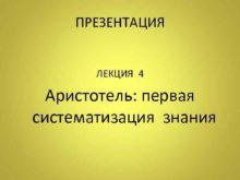 ПРЕЗЕНТАЦИЯ ЛЕКЦИЯ 4 Аристотель первая систематизация знания
