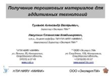 Получение порошковых материалов для аддитивных технологий Суханов Александр