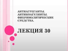 АНТИАГРЕГАНТЫ АНТИКОАГУЛЯНТЫ ФИБРИНОЛИТИЧЕСКИЕ СРЕДСТВА ЛЕКЦИЯ 30 ТРОМБООБРАЗОВАНИЕ