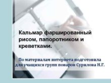 Кальмар фаршированный рисом папоротником и креветками По материалам