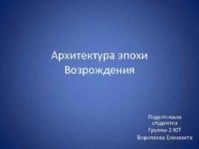 Архитектура эпохи Возрождения Подготовила студентка Группы 2 ЮТ