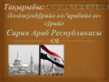 Тақырыбы ﺍﻟﺠﻤﻬﻮﺭﻳﺔﺍﻟﻌﺮﺑﻴﺔﺍﻟﺴﻮﺭﻳﺔ Әл-джумһӯрийә әл- арабийә әсcӯрийә Сирия Араб Республикасы