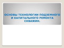 ОСНОВЫ ТЕХНОЛОГИИ ПОДЗЕМНОГО И КАПИТАЛЬНОГО РЕМОНТА СКВАЖИН