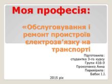 Моя професія Обслуговування і ремонт проистроїв єлектрозв язку на