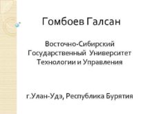 Гомбоев Галсан Восточно-Сибирский Государственный Университет Технологии и Управления