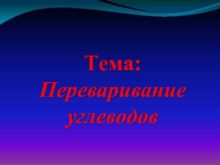 Тема Переваривание углеводов Биологическая роль углеводов Углеводы