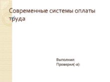Современные системы оплаты труда Выполнил Проверил -а Современные