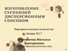 ИЗГОТОВЛЕНИЕ СУСПЕНЗИЙ ДИСПЕРСИОННЫМ СПОСОБОМ Фармацевтическая технология Лекция