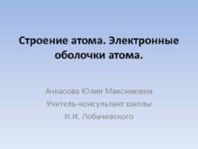 Строение атома Электронные оболочки атома Ачкасова Юлия Максимовна