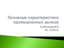 Основные характеристики промышленных рынков Хлебникова В В Фт-340016