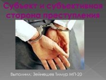 Cубъект и субъективная сторона преступления Выполнил Зейнешев Тимур