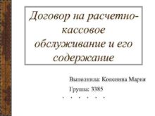 Договор на расчетнокассовое обслуживание и его содержание Выполнила