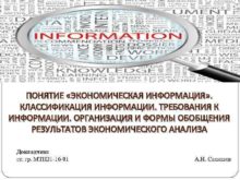 ПОНЯТИЕ ЭКОНОМИЧЕСКАЯ ИНФОРМАЦИЯ КЛАССИФИКАЦИЯ ИНФОРМАЦИИ ТРЕБОВАНИЯ К