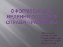ОФОРМЛЕННЯ ТА ВЕДЕННЯ ОСОБОВОЇ СПРАВИ ПРАЦІВНИКА Підготували учні