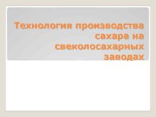 Технология производства сахара на свеколосахарных заводах Сахар