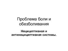 Проблема боли и обезболивания Ноцицептивная и антиноцициптивная системы