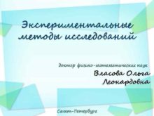 Экспериментальные методы исследований доктор физико-математических наук Власова Ольга