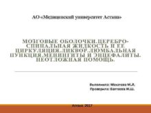 AO Медицинский университет Астана МОЗГОВЫЕ ОБОЛОЧКИ ЦЕРЕБРОСПИНАЛЬНАЯ