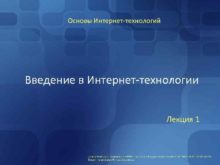Основы Интернет-технологий Введение в Интернет-технологии Лекция 1