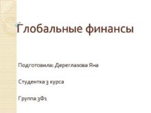 Глобальные финансы Подготовила Дереглазова Яна Студентка 3 курса
