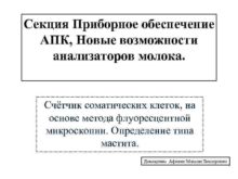 Секция Приборное обеспечение АПК Новые возможности анализаторов молока