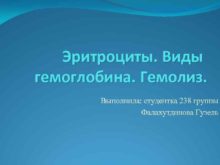 Эритроциты Виды гемоглобина Гемолиз Выполнила студентка 238 группы