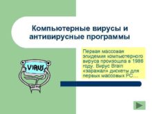 Компьютерные вирусы и антивирусные программы Первая массовая эпидемия
