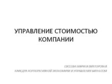УПРАВЛЕНИЕ СТОИМОСТЬЮ КОМПАНИИ ЕВСЕЕВА МАРИНА ВИКТОРОВНА КАФЕДРА КОРПОРАТИВНОЙ