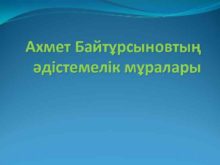 Ахмет Байтұрсыновтың әдістемелік мұралары Әдістемеге