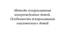 Методы вскармливания новорожденных детей Особенности вскармливания маловесных детей