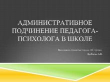 АДМИНИСТРАТИВНОЕ ПОДЧИНЕНИЕ ПЕДАГОГАПСИХОЛОГА В ШКОЛЕ Выполнила студентка 1