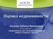 Оценка недвижимости Козлова Татьяна Валерьевна tkozlova mesi ru Кафедра