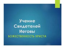 Учение Свидетелей Иеговы БОЖЕСТВЕННОСТЬ ХРИСТА Учение Свидетелей
