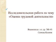 Исследовательская работа на тему Оценка трудовой деятельности Выполнила