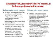Понятия библиографического списка и библиографической ссылки Библиографический список