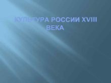 КУЛЬТУРА РОССИИ XVIII ВЕКА Особенности развития художественной