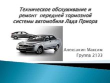 Техническое обслуживание и ремонт передней тормозной системы автомобиля