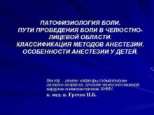 ПАТОФИЗИОЛОГИЯ БОЛИ ПУТИ ПРОВЕДЕНИЯ БОЛИ В ЧЕЛЮСТНОЛИЦЕВОЙ ОБЛАСТИ